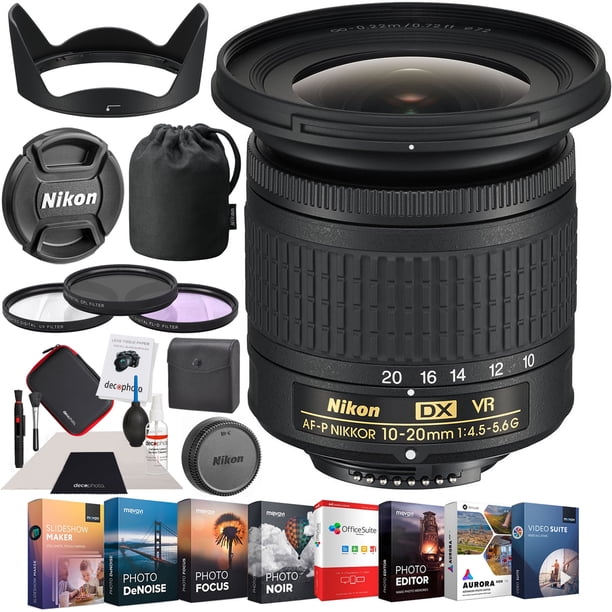 Nikon 20067 Af P Dx Nikkor 10 20mm F 4 5 5 6g Vr Lens Bundle With Photo And Video Professional Editing Suite 72mm Uv Polarizer Fld Deluxe Filter Kit And Cleaning Kit For Dslr Cameras