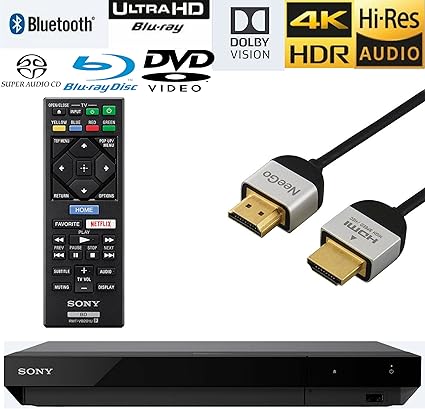 Amazon Com Neego Sony Ubp X700 Streaming 4k Ultra Hd 3d Hi Res Audio Wi Fi And Bluetooth Built In Blu Ray Player With Remote Control Black Neego 4k Hdmi Cable And Neego Rca Y Adapter Electronics